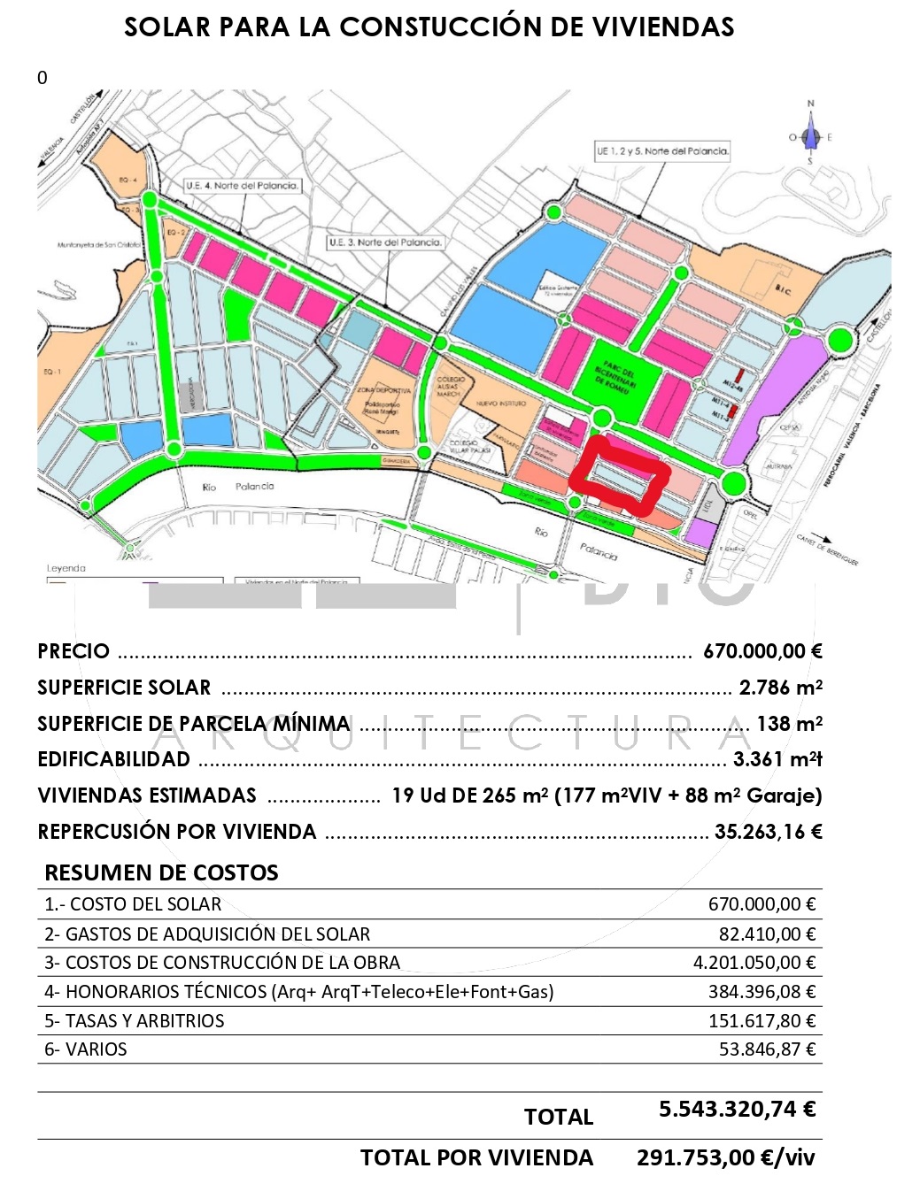 Con esta información y ya en el despacho elaboramos una propuesta económica por el solar.
